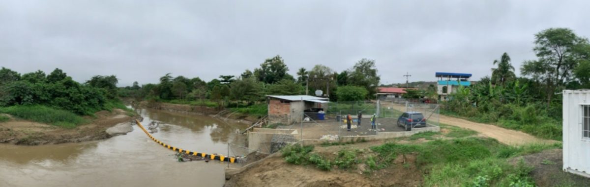 Our “after shot”, with the installation ready to remove plastic debris from the Portoviejo River, Ecuador.